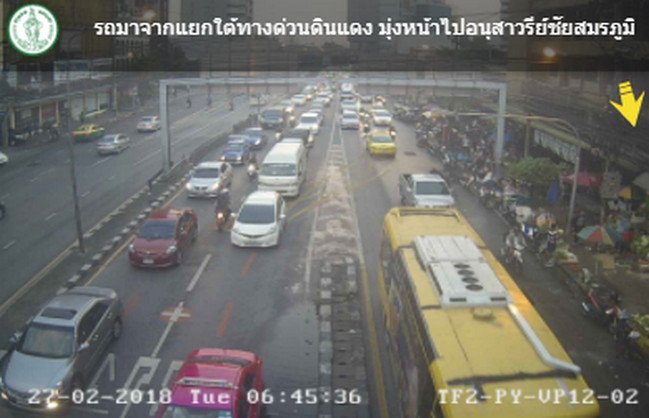กทม. 27 ก.พ.-สวพ.FM 91 รายงานจราจรเช้าวันอังคาร ถนนดินแดง ขาเข้า มุ่งหน้า อนุสาวรีย์ชัยฯ รถมากเคลื่อนตัวช้า ท้ายสะสมช่วงใต้ด่วนดินแดง