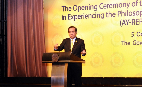 ทำเนียบฯ 5 ต.ค.-นายกฯ เป็นประธานเปิดโครงการเยาวชนอาเซียนเรียนรู้หลักปรัชญาของเศรษฐกิจพอเพียงตามรอยพระยุคลบาท พร้อมให้โอวาทแก่เยาวชน เน้นเรียนรู้หลักปรัชญาเศรษฐกิจพอเพียง ประยุกต์ใช้สิ่งใหม่โดยไม่ทิ้งของเก่า และเห็นผลเป็นรูปธรรม ไม่ใช่แค่พิธีกรรมเฉพาะหน้า