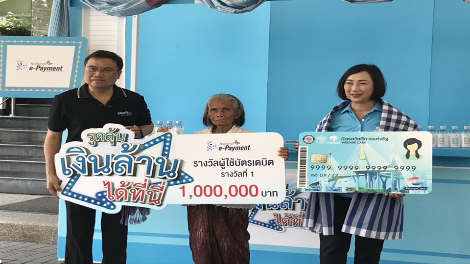 เมื่อใช้จ่ายผ่านบัตร 1 ครั้ง เท่ากับ 1 สิทธิ์ในการชิงรางวัล สำหรับซื้อสินค้าหรือวัตถุดิบการเกษตร หวังสร้างความคุ้นเคยกับการรับสวัสดิการและใช้จ่ายผ่านบัตรทดแทนเงินสดก้าวสู่เศรษฐกิจยุคดิจิทัล โดยในปี 2560 มีปริมาณธุรกรรมบัตรเดบิตขยายตัวกว่าร้อยละ 32 เมื่อเทียบกับปีก่อน มูลค่าธุรกรรมเพิ่มขึ้นกว่า 17,000 ล้านบาท การรูดบัตรเพิ่มจาก 5 ล้านรายการ เป็น 17 ล้านรายการ นับว่าชาวบ้านสนใจใช้ทั้งบัตรเดบิต บัตรสวัสดิการรูดซื้อสินค้ามากขึ้น ขณะที่กระทรวงการคลังเดินหน้าติดตั้งเครื่อง EDC ให้ครบ 500,000 ร้านค้า จากปัจจุบันติดตั้งแล้ว 190,000 ร้านค้า