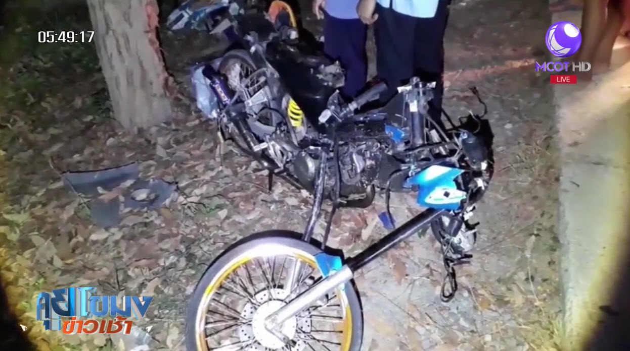 ประจวบคีรีขันธ์ 2 มี.ค.-สองหนุ่มซิ่งรถจักรยานยนต์กลับจากเวียนเทียน เฉี่ยวชนรถกระบะ ก่อนเสียหลักชนต้นไม้ริมถนน เสียชีวิตคาที่ 1 ราย บาดเจ็บสาหัส 1 ราย