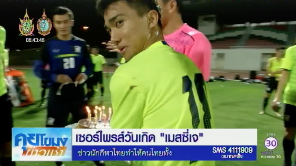 สหรัฐอาหรับเอมิเรตส์ 5 ต.ค.- ถือเป็นธรรมเนียมของแคมป์ฟุตบอลทีมชาติไทยที่จะเซอร์ไพรส์วันเกิดให้กับนักเตะในช่วงระหว่างการเก็บตัว เพื่อสร้างความสัมพันธ์ และสามัคคีกันในทีม ซึ่งปีนี้ เมสซี่เจ ชนาธิป สรงกระสินธ์ มีอายุครบ 23 ปีพอดี