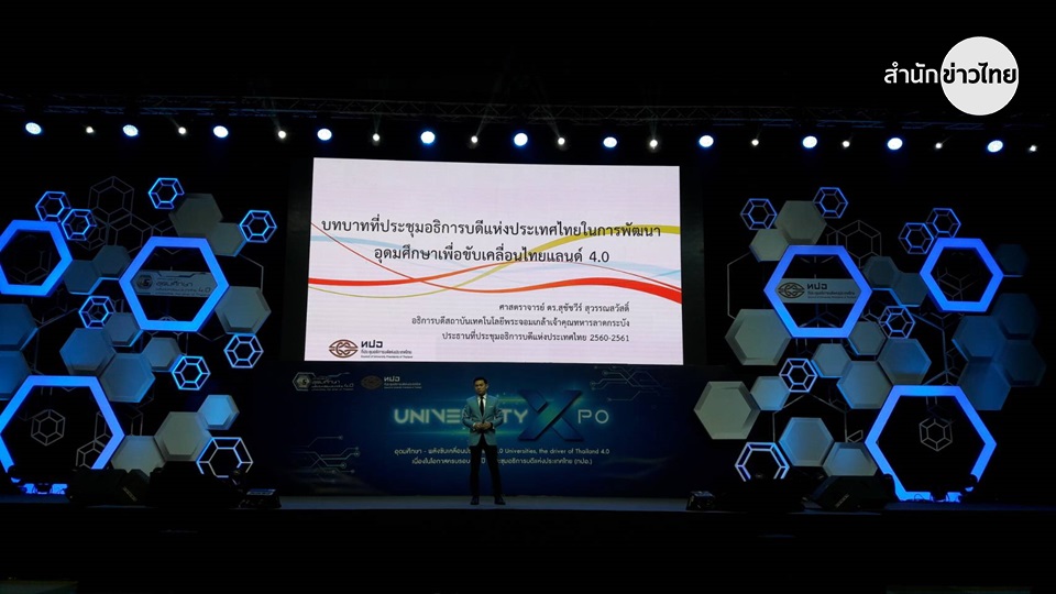 นายสุชัชวีร์ สุวรรณสวัสดิ์ ประธานที่ประชุมอธิการบดีแห่งประเทศไทย(ทปอ.) แถลงบทบาทของ ทปอ.ในฐานะองค์กรหลักการพัฒนาอุดมศึกษาเพื่อการขับเคลื่อนประเทศ ในหัวข้อ พลังใหม่แห่งการศึกษา เพื่ออนาคตใหม่ของประเทศไทย ในงาน มหกรรมยูนิเวอร์ซิตี้ เอ็กโป 2018 ในโอกาสฉลองครบรอบ45 ปี ที่รอยัลพารากอนฮอล์ สยามพารากอน ว่า ในยุคที่เศรษฐกิจโลกถูกขับเคลื่อนด้วยเทคโนโลนีอย่างเต็มรูปแบบและมีความเสี่ยงของแรงงานที่จะถูกแทนที่ด้วยเทคโนโลยี มหาวิทยาลัยในฐานะที่เป็นสถาบันหลักในการผลิตบุคคลากรป้อนสู่ตลาดแรงงาน จึงต้องปรับเปลี่ยนทัศนคติเพื่อรองรับตลาดแรงงานอนาคต คือมหาวิทยาลัยไม่ใช่เพียงสถานที่สอนอย่างเดียวแต่ต้องเป็นแหล่งเรียนรู้รอบด้าน เน้นการสร้างทักษะ จินตนาการ ความคิดสร้างสรรค์ โดยเฉพาะการลงมือจริง มหาวิทยาลัยต้องเตรียมบุคคลากรสำหรับตลาดแรงงานที่ยังไม่เกิดแต่มีแนวโน้มเกิดขึ้นในอนาคต รวมถึงการเชื่อมโยงความร่วมมือระหว่างมหาวิทยาลัย ภาครัฐ และภาคเอกชนเพื่อขับเคลื่อนบุคคลากรให้ตอบโจทย์กับสังคม ถึงเวลาต้องเปลี่ยนแปลง ทปอ.ต้องมุ่งเน้นเรื่องวิทยาศาสตร์ เทคโนโลยี วิศวกรรมศาสตร์และคณิตศาสตร์ เพื่อตอบโจทย์ตลาดแรงงานในภาคธุรกิจที่ต้องการมากในอนาคต ความร่วมมือของมหาวิทยาลัยจะช่วยพัฒนาประเทศ