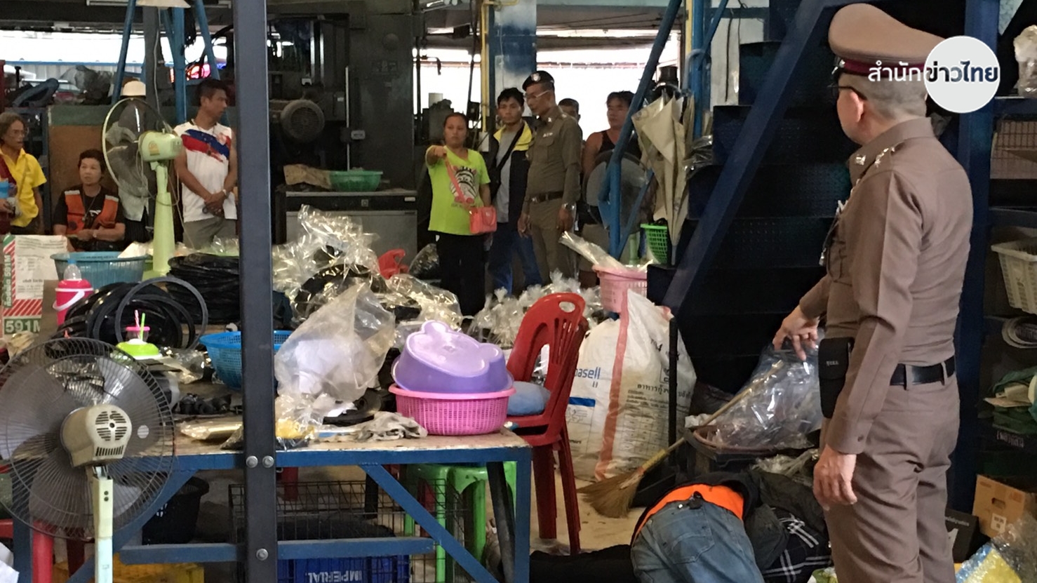 พนักงานสอบสวน สน. ภาษีเจริญ พร้อมเจ้าหน้าที่กองพิสูจน์หลักฐานเข้าตรวจสอบที่เกิดเหตุภายในโรงงานบริษัทเซ็นเตอร์รับเบอร์ จำกัด ซอยเพชรเกษม 48 แยก 4-7 หลังรับแจ้งเหตุยิงกันตาย