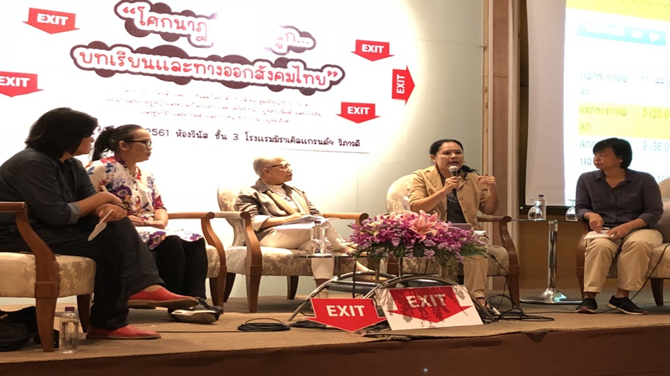 ในเวทีเสวนา “โศกนาฎกรรมแม่ลูก…บทเรียนและทางออกสังคมไทย” จัดโดย โครงการปกป้องเด็กและเยาวชนลดปัจจัยเสี่ยงทางสังคม มูลนิธิหญิงชายก้าวไกล แผนงานสุขภาวะผู้หญิงและความเป็นธรรมทางเพศ เครือข่ายนักกฎหมายเพื่อเด็กและเยาวชน และศูนย์ฝึกและอบรมเด็กและเยาวชน (ชาย)บ้านกาญจนาภิเษก