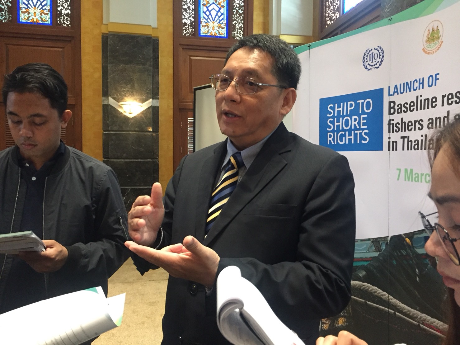 ปลัดกระทรวงแรงงาน กล่าวต่อไปว่า กรมการจัดหางาน กระทรวงแรงงาน ได้ดำเนินการสแกนม่านตาแรงงานประมงไปแล้วกว่า 1 แสนคน จากทั้งหมดเกือบ 2 แสนคน เนื่องจากมีส่วนหนึ่งกลับประเทศต้นทางไปแล้ว จึงทำให้ขณะนี้เหลือแรงงานต้องสแกนม่านตาอยู่ไม่ถึง 1 แสนคน โดยจังหวัดที่มีมากที่สุดคือ สมุทรสาคร เหลือแรงงานประมงอยู่กว่า 6 หมื่นคน วันนี้จึงได้เคลื่อนย้ายเครื่องสแกนม่านตาในจังหวัดที่ดำเนินเสร็จแล้วมาช่วยที่จังหวัดนี้อีก 10 เครื่อง รงมของเดิมที่มีอยู่แล้ว 2 เครื่อง โดยเครื่องหนึ่งจะสามารถสแกนม่านตาแรงงานได้ 500 คนต่อวัน 12 เครื่องก็ประมาณ 6,000 คนต่อวัน คาดว่าภายใน 10 วันการพิสูจน์อัตลักษณ์แรงงานประมงที่สมุทรสาครก็จะเสร็จสิ้น