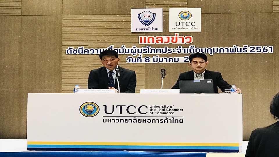 นายธนวรรธน์ พลวิชัย ผู้อำนวยการ ศูนย์พยากรณ์เศรษฐกิจและธุรกิจ มหาวิทยาลัยหอการค้าไทย เปิดเผยผลสำรวจดัชนีความเชื่อมั่นผู้บริโภคเดือนกุมภาพันธ์ 2561 พบว่า ปรับตัวลดลงครั้งแรกในรอบ 7 เดือน นับตั้งแต่สิงหาคม 2560 มาอยู่ที่ระดับ 79.3 จากเดือนมกราคม 2561 อยู่ที่ระดับ 80.0 มาจากความกังวลเกี่ยวกับสถานการณ์ทางการเมือง ตลอดจนราคาสินค้าเกษตรที่แม้จะมีแนวโน้มดีขึ้น แต่สินค้าเกษตรส่วนใหญ่อีกหลายรายการยังทรงตัวระดับต่ำ ทำให้กำลังซื้อหลายจังหวัดยังไม่ดีขึ้น รวมทั้งมีความกังวลต่อผลกระทบจากเงินบาทที่แข็งค่าขึ้น และการปรับขึ้นค่าแรงที่อาจจะส่งผลกระทบต่อเศรษฐกิจไทย ซึ่งดัชนีความเชื่อมั่นของผู้บริโภคโดยรวมยังคงอยู่ในระดับต่ำกว่า 100 สะท้อนว่าผู้บริโภคยังคงกังวลภาพรวมเศรษฐกิจไทยยังไม่ฟื้นตัวมากนัก