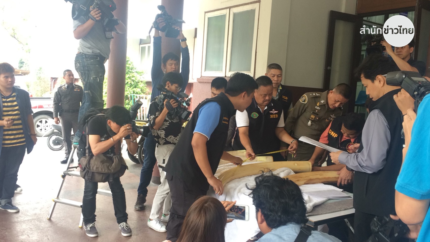 เจ้าหน้าที่ชุดเหยี่ยวดง กรมอุทยานแห่งชาติสัตว์ป่าและพันธุ์พืช ตรวจวัดขนาดและอัตลักษณ์ทางนิติวิทยาศาสตร์งาช้าง 2 คู่ ที่ตรวจยึดมาจากบ้านพักนายเปรมชัย กรรณสูต ผู้ต้องหาคดีล่าสัตว์ป่า ก่อนรับไปจากตำรวจกองบังคับการปราบปรามการกระทำความผิดเกี่ยวกับทรัพยากรธรรมชาติและสิ่งแวดล้อม หรือ ปทส. เพื่อนำไปเก็บรักษาไว้เป็นหลักฐานในคดี ที่ตำรวจแจ้งข้อกล่าวหานายเปรมชัยและภรรยา ครอบครองซากสัตว์ป่า