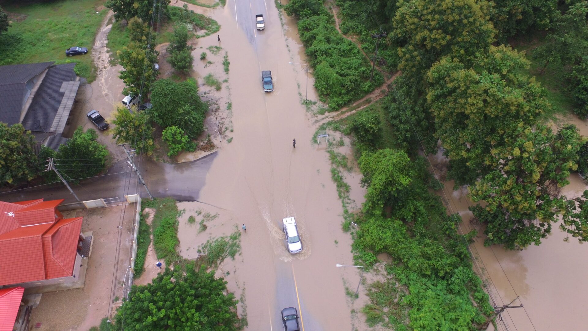 ลำปาง 4 ต.ค.- ถนนสายหลักแจ้ห่ม-เชียงราย การสัญจรชะงักน้ำป่าหลากท่วมจากฝนตกหนักในจังหวัดลำปาง กระทบแล้ว 5 หมู่บ้าน