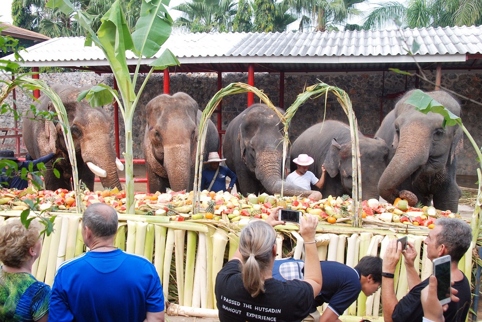นายวาณิช เห็นวงศ์ประเสริฐ ประธานกรรมการบริหารมูลนิธิช้างหัสดินทร์ เทศบาลเมืองหัวหิน จ.ประจวบคีรีขันธ์ พร้อมคณะกรรมการ รวมทั้งจิตอาสาทั้งชาวไทยและต่างชาติร่วมกิจกรรมเลี้ยงเค้กผลไม้น้ำหนัก 10 ตัน ให้กับช้าง 6 เชือก โดยมีผลไม้นานาชนิดมาให้ช้างกินอย่างเต็มอิ่ม อาทิ กล้วย สับปะรด แอปเปิ้ล ข้าวโพด ขณะที่ “พังสงกรานต์” ช้างแสนรู้วัย 10 ปี ยังใช้งวงพ่นน้ำดับเทียนเค้กผลไม้ ท่ามกลางบรรยากาศเต็มไปด้วยความสุขใจของผู้ร่วมงานที่ได้สัมผัสช้างอย่างใกล้ชิด และเป็นการช่วยกันอนุรักษ์ช้างสัตว์ประจำชาติไทย ซึ่งคณะรัฐมนตรีได้มีมติเมื่อวันที่ 26 พฤษภาคม 2541 ประกาศให้วันที่ 13 มีนาคมของทุกปีเป็นวันช้างไทย