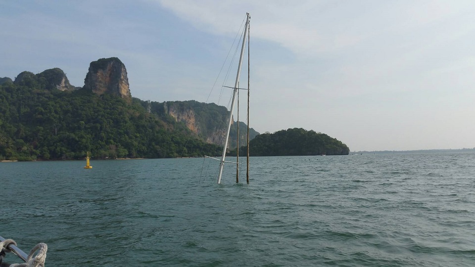 นายวรพจน์ ล้อมลิ้ม หัวหน้าอุทยานแห่งชาติหาดนพรัตน์ธารา-หมู่เกาะพีพี จ.กระบี่ ได้รับแจ้งเมื่อเวลา 09.30 น. วันนี้ (12 มี.ค.) เกิดเหตุเรือยอชท์จมบริเวณไร่เลย์ ต.อ่าวนาง อ.เมือง จ.กระบี่ จึงให้เจ้าหน้าที่นำเรือตรวจการเข้าตรวจสอบพบว่าเรือจมมิดทั้งลำ บริเวณน้ำลึกประมาณ 3-4 เมตร เหลือเพียงเสากระโดงเรือ ห่างจากชายฝังประมาณ 1 กม.ไม่กีดขวางการเดินเรือ และไม่มีใครได้รับบาดเจ็บ ซึ่งเจ้าหน้าที่จะเร่งตรวจสอบเพื่อประสานเจ้าของเรือมาดำเนินการกู้เรือ