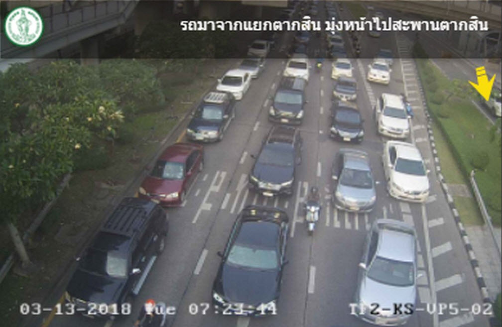 ถนนดินแดง ขาเข้า มุ่งหน้าอนุสาวรีย์ชัยฯ รถเคลื่อนตัวได้ช้า ท้ายสะสมเต็มที่แยกดินแดง