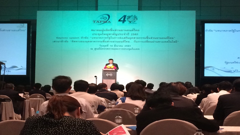 นายสมชาย หาญหิรัญ รัฐมนตรีช่วยว่าการกระทรวงอุตสาหกรรม กล่าวปาฐกถา “บทบาทภาครัฐในการส่งเสริมอุตสาหกรรมชิ้นส่วนยานยนต์ไทย” ในการประชุมใหญ่สามัญประจำปี 2561 สมาคมผู้ผลิตชิ้นส่วนยานยนต์ไทย ว่า ปัจจุบันไทยส่งออกชิ้นส่วนยานยนต์มูลค่ากว่า 300,000 ล้านบาท แต่ขณะเดียวกันก็มีการนำเข้าชิ้นส่วนยานยนต์เกือบ 400,000 ล้านบาท ทั้งนี้ รัฐบาลได้มีนโยบายให้ผู้ผลิตชิ้นส่วนยานยนต์ในประเทศให้ปฏิบัติตาม ซึ่งผู้ประกอบการจะต้องมีการปรับตัวตลอดเวลา เรียนรู้อย่างต่อเนื่อง ทำงานเป็นทีม ติดต่อสื่อสารกับคนอื่นรู้เรื่อง และโดยส่วนตัวมองว่าเรื่องเทคโนโลยีจะต้องมีการเปลี่ยนแปลงแน่นอนในอนาคต แต่ไม่มีใครรู้ว่าจะเปลี่ยนแปลงอย่างไร ดังนั้น ต้องปรับตัวรองรับเทคโนโลยีในอนาคต ที่ผ่านมาอุตสาหกรรมยานยนต์อยู่ได้ เพราะความเข้มแข็งของอุตสาหกรรมชิ้นส่วนยานยนต์ที่เติบโตมาตลอด 40 ปี.-สำนักข่าวไทย