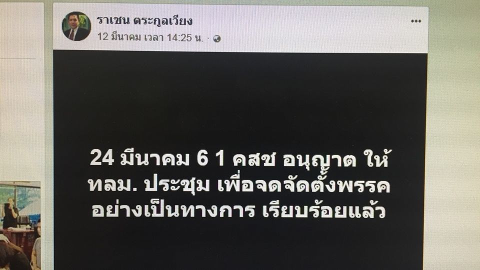 กรุงเทพฯ 14 มี.ค.- พรรคทางเลือกใหม่ พร้อมจัดประชุม 24 มี.ค. ตามที่ คสช.อนุญาต ยอดขอจดจัดตั้งพรรคการเมืองมี 57 พรรคแล้ว