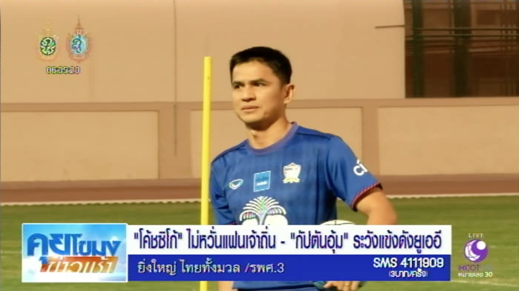 ครบรอบ 1 สัปดาห์ ในการเก็บตัวฝึกซ้อมที่กรุงอาบูดาบี ประเทศสหรัฐอาหรับเอมิเรตส์ ของนักเตะทีมชาติไทยชุดแข่งขันฟุตบอลโลก 2018 รอบคัดเลือก เมื่อวานนี้ “โค้ชซิโก้” เกียรติศักดิ์ เสนาเมือง หัวหน้าโค้ชนำทั้ง 23 คน ลงฝึกซ้อมที่สนามอาร์ม ฟอร์ซ สเตเดียม เมื่อช่วงเวลา 18.00 น. ตามเวลาท้องถิ่นซึ่งช้ากว่าไทย 3 ชั่วโมง กุนซือทีมช้างศึกลดความเข้มข้นการฝึกซ้อมลง เพราะซ้อมหนักมาต่อเนื่อง 6 วัน การซ้อมเน้นไปที่การทบทวนเกมรับ และเกมรุก ที่ต้องเข้าโจมตีอย่างรวดเร็ว โดยใช้เวลากว่า 1.30 ชม. โค้ชซิโก้ กล่าวว่า ตอนนี้ทุกคนพร้อมสำหรับเกมวันที่ 6 ตุลาคมแล้ว ส่วนที่แฟนบอลเจ้าถิ่นจะเข้ามาเต็มความจุสนาม เช่นเดียวกับนัดที่พบกับออสเตรเลีย ซึ่งสร้างสถิติใหม่ด้วยจำนวน 40,893 คน ทุกคนไม่รู้สึกกังวล เพราะนักเตะไทยเคยผ่านเกมระดับแฟนบอลหลักแสนคนมาแล้ว