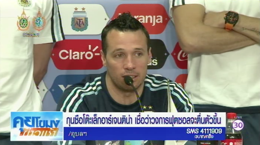 นักเตะโต๊ะเล็กทีม “ฟ้าขาว” อาร์เจนตินา ได้เดินทางถึงกรุงบัวโนสไอเรส ประเทศอาร์เจนตินา และแถลงข่าวหลังจากคว้าแชมป์ฟุตซอลชิงแชมป์โลก ที่ประเทศโคลอมเบีย มาครองได้ครั้งแรกในประวัติศาสตร์ ด้วยการเอาชนะ รัสเซีย 5-4 ในรอบชิงชนะเลิศเมื่อคืนวันเสาร์ที่ผ่านมา โดยดิเอโก กุสตอซซิ กุนซือของทีมอาร์เจนตินา กล่าวยกย่องนักเตะพวกเขาทุกครั้งที่สร้างปรากฏการณ์หน้าใหม่ของวง