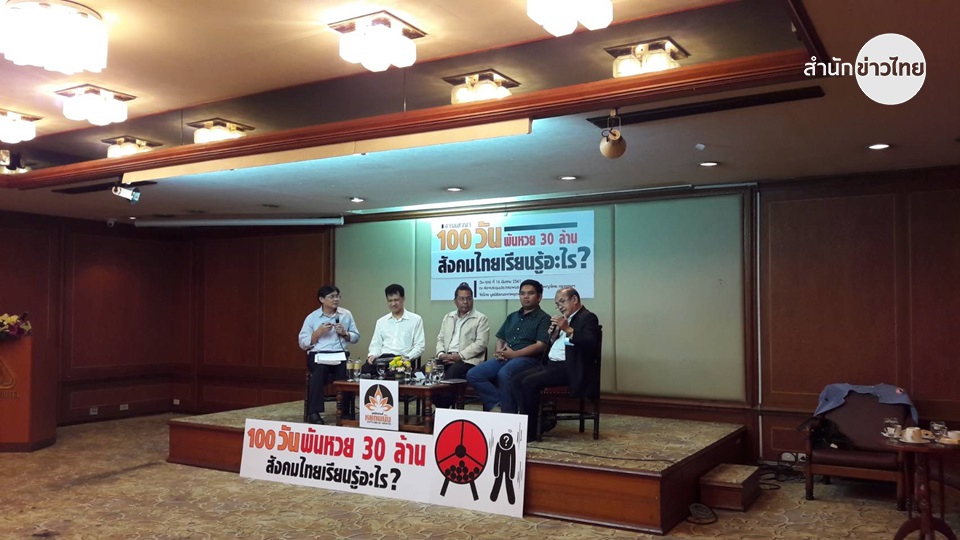 กรุงเทพฯ 16 มี.ค.-วงเสวนา 100วันพันหวย30 ล้าน สังคมไทยเรียนรู้อะไร ชี้ปรากฏการณ์หวย30 ล้าน สะท้อนสังคมป่วย ติดตามต่อเนื่องทุกวัน ยิ่งเกิดกระแสดราม่ายิ่งกระตุ้นความอยากรู้ และมองการพนันเป็นเรื่องปกติ ปัจจุบันคนหันมาซื้อลอตเตอรี่ มากถึง21 ล้านคน