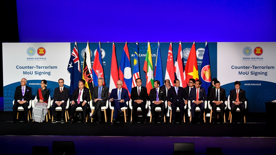 จากนั้นเวลา 16.10 น. ตามเวลาท้องถิ่น พล.อ.ประยุทธ์ และผู้นำประเทศอาเซียน ได้ร่วมพิธีปิดการประชุมว่าด้วยการต่อต้านการก่อการร้าย และเป็นสักขีพยานลงนามบันทึกความเข้าใจว่าด้วยการต่อต้านการก่อการร้าย ระหว่างเลขาธิการอาเซียนและรัฐมนตรีว่าการกระทรวงการต่างประเทศออสเตรเลีย ซึ่งเป็นความร่วมมือเชิงข้อมูลแผนปฏิบัติการและขีดความสามารถที่จะร่วมกันต่อต้านการก่อการร้ายระหว่างภูมิภาคอาเซียนและออสเตรเลีย