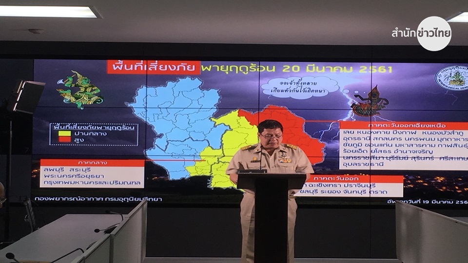 นายวันชัย ศักดิ์อุดมไชย อธิบดีกรมอุตุนิยมวิทยา กล่าวว่า กรมอุตุนิยมวิทยาตรวจพบว่าระหว่างวันที่ 20 ถึง 23 มีนาคมนี้จะเกิดพายุฤดูร้อนบริเวณประเทศไทยตอนบน โดยมีพายุฝนฟ้าคะนองและลมกระโชกแรง กับมีลูกเห็บตกได้บางพื้นที่ รวมถึงมีฟ้าผ่าเกิดขึ้น