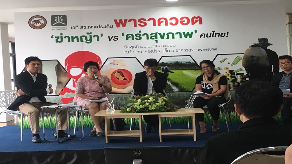 ศ.ดร.พรพิมล กองทิพย์ จากคณะสาธารณสุขศาสตร์มหาวิทยาลัยมหิดล เปิดเผยข้อมูลการวิจัยสารพาราควอตหรือยาฆ่าหญ้าว่าเป็นสารเคมีอันตรายที่มีพิษเฉียบพลันสูง ปัจจุบันยังไม่มียาถอนพิษ ประเทศที่ห้ามใช้แล้วประมาณ 53 ประเทศ อีก 15 ประเทศจำกัดการใช้ เนื่องจากว่ามีความเสี่ยงต่อโรคพาร์กินสันและระบบประสาท ในไทยมีการตรวจพบการปนเปื้อนในแหล่งน้ำใต้ดิน น้ำผิวดินน้ำประปาในหลายจังหวัดโดยเฉพาะจังหวัดน่าน ซึ่งเป็นแหล่งต้นน้ำสำคัญของประเทศและพบการตกค้างในดินจากจังหวัดนครสวรรค์ พิษณุโลก