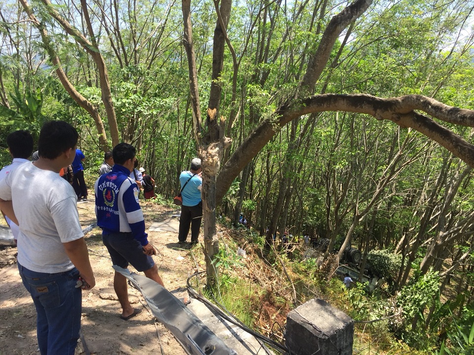 เมื่อเวลา 10.30 น. (22 มี.ค.) ร.ต.อ.วัฒนาทร บำรุงถิ่น รองสารวัตร (สอบสวน) สภ.กะทู้ จ.ภูเก็ต ประสานเจ้าหน้าที่ป้องกันและบรรเทาสาธารณภัยเทศบาลเมืองป่าตอง เทศบาลเมืองกะทู้ รวมทั้งศูนย์ป้องกันและบรรเทาสาธารณภัย เขต 18 และมูลนิธิกุศลธรรมภูเก็ต เข้าช่วยเหลืออุบัติเหตุรถสิบล้อบรรทุกน้ำ ทะเบียน 80-8436 พัทลุง เสียหลักตกเส้นทางขึ้น-ลงเขาป่าตอง มีควาามลึก 30 เมตร ก่อนถึงศาลเจ้าพ่อเสือประมาณ 200 เมตร สภาพรถพลิกหงายท้อง ชนติดกับต้นยางพารา คนขับติดอยู่ภายในรถเป็นชาย อายุประมาณ 20 ปี เจ้าหน้าที่พยายามให้การช่วยเหลือและพบว่าเสียชีวิตแล้ว เบื้องต้นทราบว่าก่อนเกิดเหตุรถคันดังกล่าวกำลังนำน้ำไปส่งลูกค้าที่เขตป่าตอง และช่วงแล่นขึ้นเขารถเกิดไหลลงช่วงเปลี่ยนเกียร์ จนไปชนราวกั้นและตกข้างทาง.-สำนักข่าวไทย