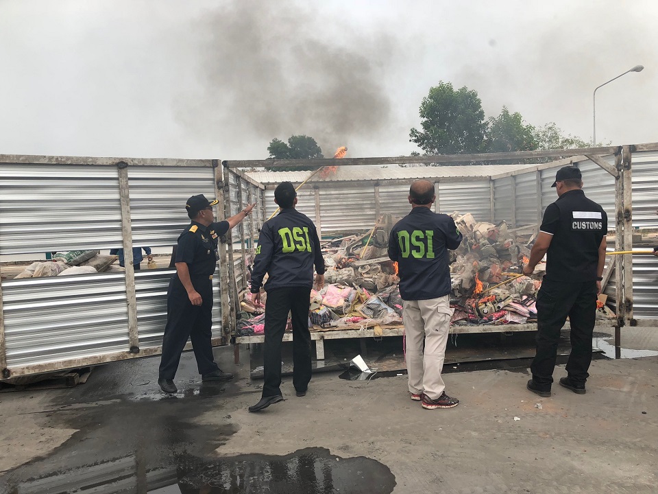 หนองคาย 27 มี.ค.- ทำลายราบ! ศุลกากรหนองคายเผาสินค้าผิดกฎหมายที่คดีสิ้นสุดแล้วหลายรายการ มูลค่า 21 ล้านบาท