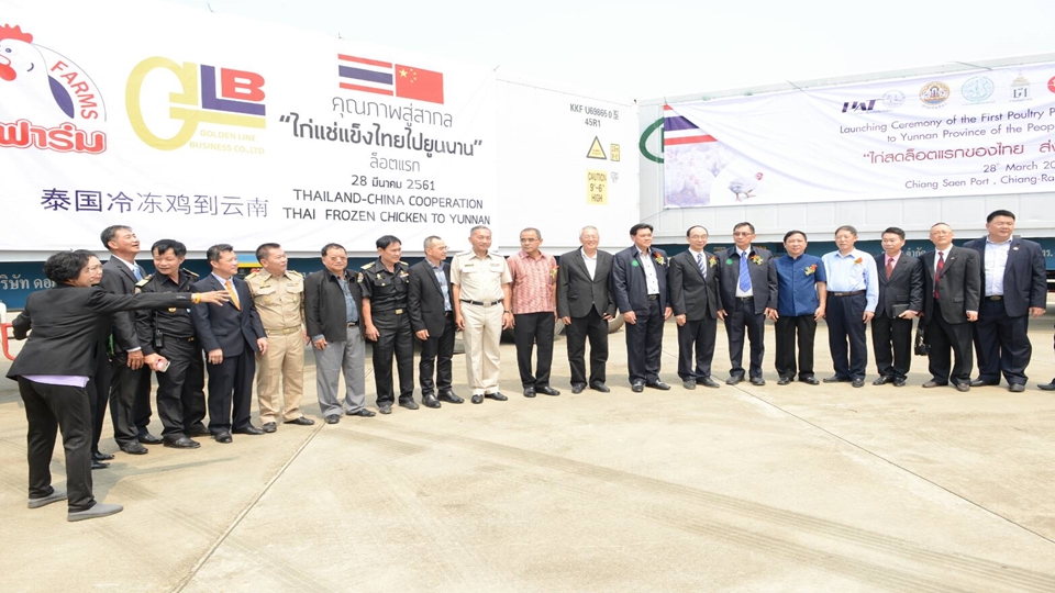 เชียงราย 28 มี.ค.-ไทยประเดิมปล่อยตู้คอนเทนเนอร์บรรจุผลิตภัณฑ์สัตว์ปีกเที่ยวปฐมฤกษ์ไปยังมณฑลยูนนานของจีนแล้ววันนี้(28