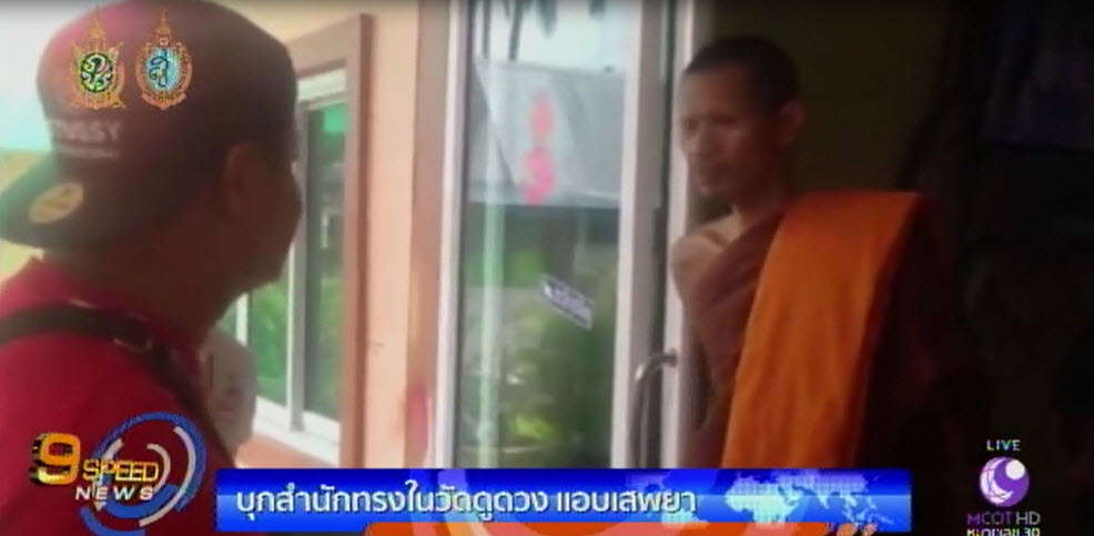 นายอำเภอน้ำพอง ร่วมกับตำรวจ และทหาร บุกตรวจค้นกุฏิพระ ภายในวัดบูรพาราม บ้านท่าโพธิ์ อ.น้ำพอง จ.ขอนแก่น หลังสืบทราบว่าพระลูกวัดเปิดสำนักรับทรงเจ้าดูดวงเสริมดวงชะตา โดยมีชาวบ้านมารอทำพิธีกว่า 20 คน ผลการตรวจค้น พบไอซ์ 1 กรัม ยาบ้า 19 เม็ด กระสุนปืนหลายขนาด จำนวน 12 นัด และอุปกรณ์เสพยา สอบสวนพระธวัชชัยย ศรีอรุณ เจ้าของกุฏิ รับสารภาพว่าเสพไอซ์จริง โดยมีโยมที่รู้จักกันนำมาขายให้ เพราะเมื่อเสพแล้วจะประกอบพิธีดูดวงได้อย่างรื่นไหล เจ้าหน้าที่จึงนำตัวไปทำการสึก พร้อมแจ้งข้อหาดำเนินคดีต่อไป.-สำนักข่าวไทย