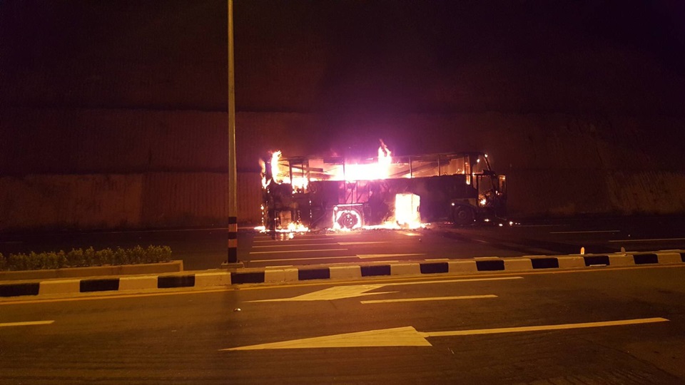 พ.ต.อ.กฤษณะ พัฒนเจริญ รองโฆษกสำนักงานตำรวจแห่งชาติ เปิดเผยกรณี รถบัสโดยสารเกิดเพลิงไหม้ บริเวณทางเข้าหน้าอุทยานแห่งชาติตากสินมหาราช จ.ตาก ว่าเหตุดังกล่าวเกิดขึ้นเวลาประมาณ 01.30 น.(30 มี.ค.) เจ้าหน้าที่ตำรวจ สภ.แม่ท้อ จ.ตาก ได้รับแจ้งมีอุบัติเหตุรถบัสโดยสารเกิดอุบัติเหตุไฟไหม้ที่ทางหลวง 105 แม่สอด – ตาก กม. 60 หน้าอุทยานแห่งชาติตากสินมหาราช เจ้าหนจึงเข้าตรวจสอบที่เกิดเหตุ พบรถบัสโดยสารแบบพัดลม ทะเบียน 103824 นครสวรรค์ เกิดไฟไหม้ลุกท่วมทั่วบริเวณคัน จึงช่วยกันดับไฟ จนเพลิงสงบลงสอบถามพยานผู้โดยสารที่อยู่ในที่เกิดเหตุทราบว่า รถบัสคันดังกล่าว โดยสารชาวเมียนมา จำนวน 47 คน เป็นแรงงาน MOU ที่เดินทางจาก อ.แม่สอด จะไปทำงานที่โรงงานที่ นวนคร ปทุมธานี ขณะนี้ตรวจสอบพบศพผู้โดยสารบนรถจำนวน 20 คน มีผู้รอดชีวิตที่หนีออกมาได้ จำนวน 27 คน ในจำนวนนี้มีบาดเจ็บสาหัส 3 ราย