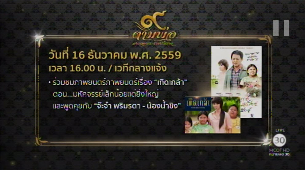 วันพรุ่งนี้ (16 ธ.ค.) เวลา 16.00 น. เชิญชวนชมภาพยนตร์ชุดเทิดเกล้า “มหัศจรรย์เล็กน้อยแต่ยิ่งใหญ่” ตอน ร้อยเรื่องรู้ ที่งาน “๙ ตามพ่อสานต่อพระราชปณิธาน” บริเวณหอประชุมใหญ่ ภายในมหาวิทยาลัยธรรมศาสตร์ ท่าพระจันทร์