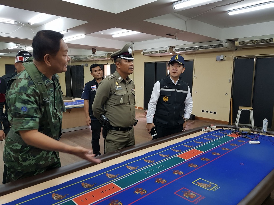 บ่ายวันนี้ (1 เม.ย.) นายนริศ นิรามัยวงศ์ นายอำเภอบางละมุง จ.ชลบุรี พ.ต.อ.อภิชัย กรอบเพชร ผกก. สภ.เมืองพัทยา ประสานกับกำลังทหาร นำชุดเจ้าหน้าที่เข้าตรวจค้นเป้าหมายเป็นอาคารพาณิชย์สูง 3 ชั้น ม.10 ต.หนองปรือ อ.บางละมุง หลังมีเบาะแสว่าลักลอบเปิดเป็นบ่อนไฮโล เมื่อเจ้าหน้าที่ไปถึงพบกลุ่มนักพนันชาย-หญิงล้อมวงเล่นกันอย่างคร่ำเคร่งอยู่บริเวณชั้นล่าง จึงควบคุมไว้ทั้งหมด 17 คน รวมทั้งเจ้ามือ พร้อมยึดของกลางอุปกรณ์การเล่นพนันหลายรายการ อาทิ โต๊ะกระดานบอกแต้ม ลูกเต๋า จาน ฝาครอบ และเงินสด ขณะที่ชั้น 2 พบโต๊ะไพ่เสือมังกรจำนวน 4 ชุด นอกจากนี้ ยังพบการติดกล้องวงจรปิดแต่ละจุด เจ้าหน้าที่ได้ควบคุมตัวผู้ต้องหาทั้งหมดส่งให้พนักงานสอบสวนดำเนินคดีตามกฎหมาย