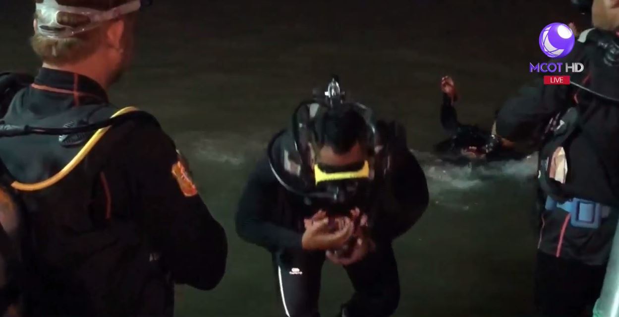 สมุทรปราการ 1 เม.ย.-เจ้าหน้าที่ใช้เวลากว่า 30 นาที งมร่างชายชาวกัมพูชา อายุ 36 ปี ริมเขื่อนแม่น้ำเจ้าพระยา ใกล้ศาลากลางจังหวัดสมุทรปราการ คาดเป็นตะคริวระหว่างเล่นน้ำคลายร้อน