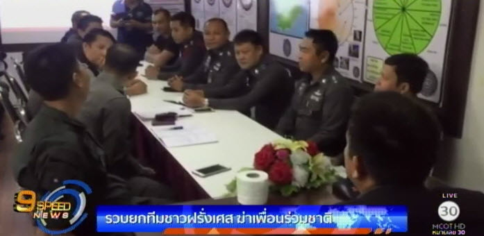 ผู้บังคับการตำรวจภูธรจังหวัดสุราษฎร์ธานี เรียกประชุมชุดสืบสวนตำรวจตรวจคนเข้าเมืองเกาะสมุย หลังสามารถจับกุม 3 ผู้ต้องหาชาวฝรั่งเศสได้ยกทีม ที่ร่วมกันก่อเหตุฆาตกรรมเพื่อนร่วมชาติ นายหน้าซื้อ-ขายที่ดินในพื้นที่เกาะสมุย เนื่องจากไม่พอใจที่ถูกผู้ตายต่อว่าที่ขายที่ดินให้กับนายหน้าคนอื่น หลังก่อเหตุได้ห่อศพไปทิ้งที่น้ำตก ก่อนแยกย้ายกันหลบหนี เบื้องต้นมีเพียง 1 คนที่ให้การรับสารภาพ อีก 2 คนให้การภาคเสธ.-สำนักข่าวไทย