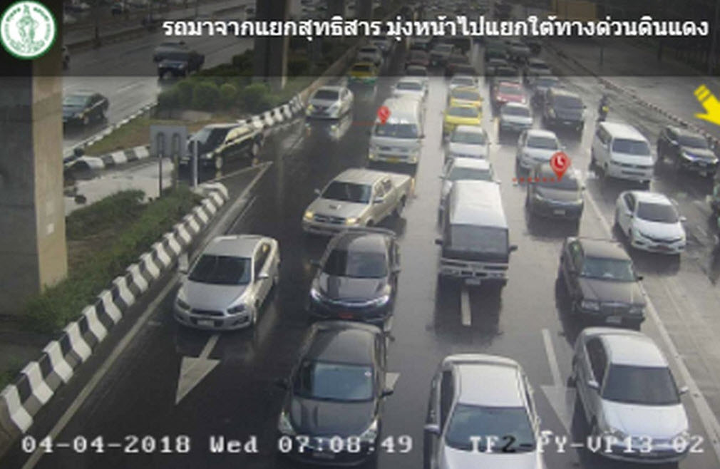 ถนนวิภาวดี – รังสิต ขาเข้า จากสุทธิสาร มุ่งหน้าใต้ด่วนดินแดง รถมาก ท้ายสะสมปากซอยมิตรไมตรี