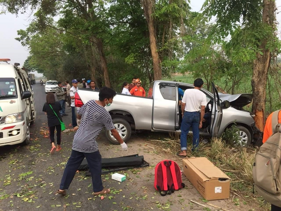 อุดรธานี 4 เม.ย.- พลทหารลากลับบ้านที่อุดรฯ ขับรถกระบะพาแม่และญาติมาตรวจสุขภาพ อีก 6 กม.ถึง รพ. รถพุ่งเข้าชนต้นไม้อย่างแรง เสียชีวิต 3 ราย เจ็บอีก 2 คาดสาเหตุหลับใน