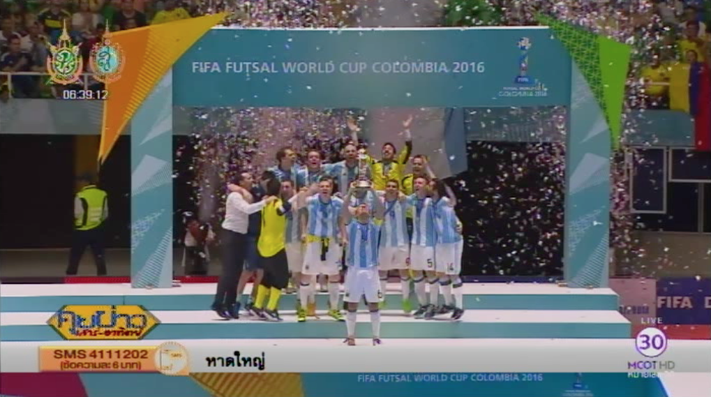 โคลอมเบีย 2 ต.ค.- อาร์เจนตินา คว้าแชมป์ฟุตซอลชิงแชมป์โลกสมัยแรกในประวัติศาสตร์ หลังเฉือนชนะ รัสเซีย 5-4 ส่วนอิหร่าน ตัวแทนจากเอเชีย คว้าอันดับ 3