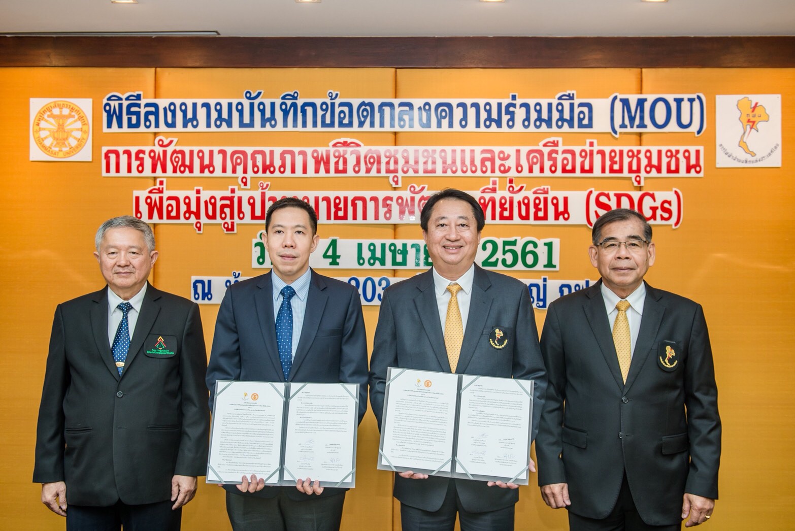 นายสืบพงษ์ บูรณศิรินทร์ รองผู้ว่าการกิจการสังคม การไฟฟ้าฝ่ายผลิตแห่งประเทศไทย (กฟผ.) กล่าวว่า วานนี้ (4 เม.ย.) กฟผ.ลงนามบันทึกข้อตกลง “โครงการพัฒนาชุมชนและเครือข่าย มุ่งสู่เป้าหมายการพัฒนาที่ยั่งยืน” ร่วมกับมหาวิทยาลัยธรรมศาสตร์ เพื่อร่วมกันสร้างและพัฒนาแหล่งเรียนรู้ของชุมชนตามแนวคิดเศรษฐกิจพอเพียงให้เป็นชุมชนต้นแบบการพัฒนาอย่างยั่งยืนในพื้นที่ใกล้เคียง กฟผ. ทั่วประเทศ นำร่องภูมิภาคละ 1 แห่ง ทั่วทั้ง 4 ภูมิภาค