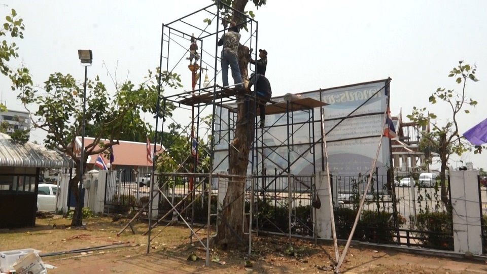 น.ส.สมร ทองโคกสี นักวิชาการป่าไม้ชำนาญการ สำนักจัดการทรัพยากรป่าไม้ที่ 6 (อุดรธานี) นำทีมรุกขกรเร่งฟื้นฟูต้นทองกวาวขนาดใหญ่ ซึ่งเป็นไม้ประจำจังหวัดอุดรธานี รอบบริเวณศาลากลางจังหวัด รวมทั้งต้นพะยูงเกิดปัญหาโรคพืชและแมลง เสี่ยงทำให้ต้นไม้ตายได้ จึงต้องรีบดูแลรักษา โดยเจ้าหน้าที่ได้นำนั่งร้านล้อมบริเวณต้นและขึ้นไปตัดแต่งกิ่งตายออก พร้อมใส่ยาบำรุงและกำจัดแมลงปีกแข็ง รวมทั้งเชื้อรา ส่วนใดที่เป็นโพรงจะอุดปิดกันน้ำและแมลงเข้าไปกัดกินเนื้อไม้