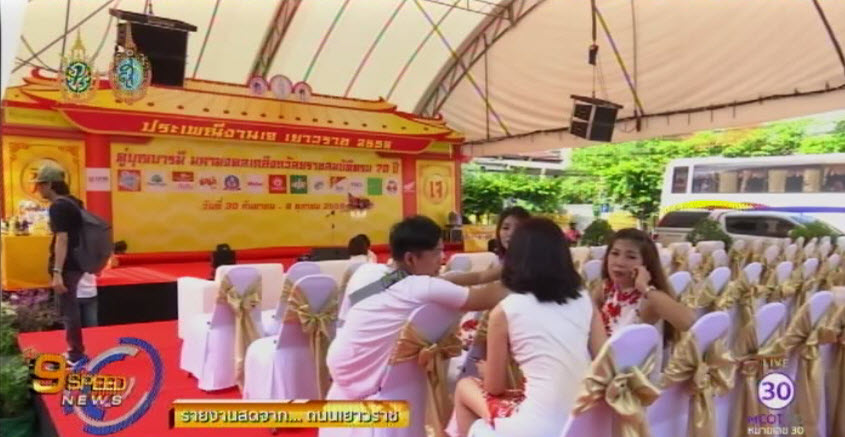 บรรยากาศที่ถนนเยาวราช ยิ่งช่วงเย็นก็ยิ่งคึกคัก เต็มไปด้วยประชาชนที่มาเลือกซื้ออาหารเจ ที่ตั้งซุ้มเรียงรายมากกว่า 100 ร้านตลอดสองข้างทางของถนนเยาวราช โดยการเปิดงานอย่างเป็นทางการจะมีขึ้นในเวลา 17.00 น. โดยรองผู้ว่าราชการกรุงเทพมหานคร พร้อมร่วมปล่อยขบวนรถบุปผาชาติ องค์สมมุติเจ้าแม่กวนอิม ที่จะแห่โดยรอบของถนนเยาวราช