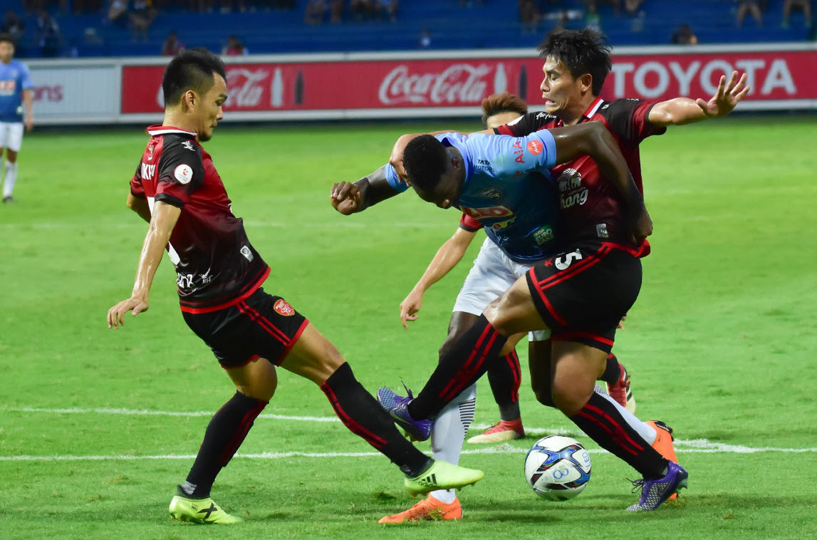 สำนักข่าวไทย 8 เม.ย.-บีจีเอฟซี เปิดสนามลีโอ สเตเดี้ยม รับการมาเยือนของโปลิศ เทโร เอฟซี เริ่มเกมได้เพียง 2 นาที บีจีเอฟซีได้ประตูขึ้นนำโปลิส เทโร เอฟซี 1-0 จากจังหวะทุ่มเร็วให้เฟเดริค เมนดี้ ตวัดบอลเข้าไปกลางประตูให้มาริโอ ยูรอฟสกี้ เข้าชาร์จเต็มๆ หลังจากนั้นในนาทีที่ 15 อ่อง ธู ของโปลิศ เทโร เอฟซี ได้บอลจากการเบิ้ลจังหวะเดียวของไมเคิ่ล เอนดรี้ ซัดเฉี่ยวเสาไปอย่างน่าเสียดาย