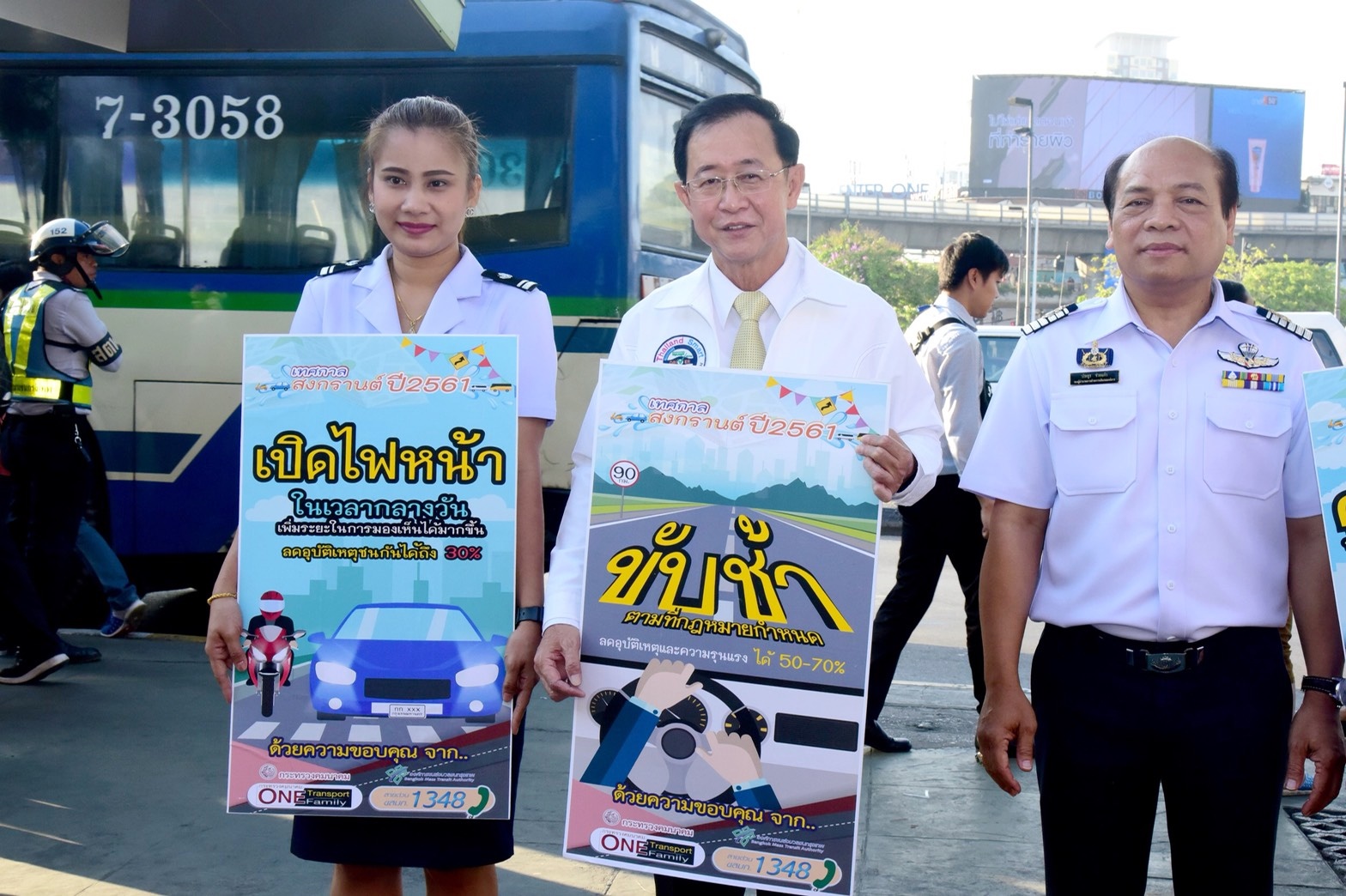 โดยรัฐมนตรีว่าการ กระทรวงคมนาคม มอบนโยบายการรณรงค์สร้างจิตสำนึก “ขับช้า เปิดไฟหน้า คาดเข็มขัด” สร้างวัฒนธรรมความปลอดภัยทางถนนและในช่วงเทศกาลสงกรานต์ 2561 ได้กำหนดมาตรการ 777 ยกกำลัง 3 เนื่องจากมีวันหยุดต่อเนื่องหลายวัน โดยมุ่งเน้นลดสถิติการเกิดอุบัติเหตุ สร้างความเชื่อมั่นเรื่องความปลอดภัยในการเดินทางด้วยบริการรถโดยสารสาธารณะ ขสมก.ในเขตกรุงเทพฯ และปริมณฑล พร้อมทั้งเน้นย้ำให้ทุกหน่วยงานที่เกี่ยวข้องจัดบริการและอำนวยความสะดวกด้านระบบคมนาคมขนส่ง เพื่อรองรับการเดินทางของประชาชน โดยเฉพาะหน่วยงานซึ่งรับผิดชอบดูแลการเดินทางบนท้องถนน กำหนดมาตรการบริหารจัดการอำนวยความสะดวกการจราจร ตรวจสอบปรับปรุงผิวจราจรและไหล่ทางให้อยู่ในสภาพดีไม่เป็นอุปสรรคที่อาจเป็นสาเหตุของอุบัติเหตุ พร้อมบูรณาการหน่วยงานในสังกัดกระทรวงคมนาคมจัดตั้งเต็นท์ One Transport บน 77 สายทางบนโครงข่ายกระทรวงคมนาคม