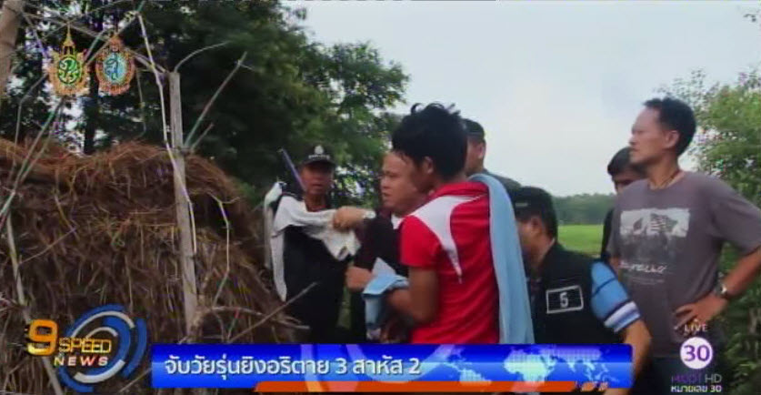 ศรีสะเกษ 1 ต.ค. – ตำรวจใช้เวลาชั่วข้ามคืนติดตามจับกุมนายภาณุวัฒน์ มือปืนยิงกลุ่มคู่อริในงานแซนโฎนตา เสียชีวิต 3 คน บาดเจ็บสาหัส 2 คน เมื่อกลางดึกวันที่ 30 กันยายนที่ผ่านมา บริเวณกองฟางติดทุ่งนาบ้านเหล็ก หมู่ 4 ต.พิมายเหนือ อ.ปรางค์กู่ จ.ศรีสะเกษ พร้อมนำตัวไปทำแผนประกอบคำรับสารภาพ จากการสอบสวนผู้ต้องหารับสารภาพก่อเหตุจริง แต่เพื่อป้องกันตัว เนื่องจากถูกกลุ่มคู่อริที่มีจำนวนมากกว่าไล่ทำร้าย และได้ยินเสียงปืน จึงชักปืนที่ติดตัวมาตอบโต้ ก่อนหลบหนีโดยทิ้งปืนไว้ในกองฟาง หลังจากนี้ตำรวจจะนำตัวไปฝากขังกับศาลจังหวัดศรีสะเกษ. -สำนักข่าวไทย