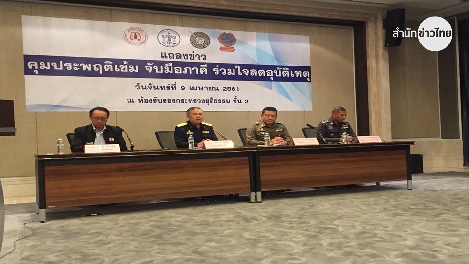 นายประสาร มหาลี้ตระกูล อธิบดีกรมคุมประพฤติ จับมือภาคีเครือข่าย มูลนิธิเมาไม่ขับ สำนักงานตำรวจแห่งชาติ และกองบัญชาการตำรวจนครบาล จัดแถลงข่าวรณรงค์ “คุมประพฤติเข้ม จับมือภาคี ร่วมใจลดอุบัติเหตุ”เพื่อสร้างความตระหนักรู้และกระตุ้นเตือนจิตสำนึกแก่ผู้ใช้รถใช้ถนน ป้องกันลดอุบัติเหตุในช่วงเทศกาลสงกรานต์ 2561