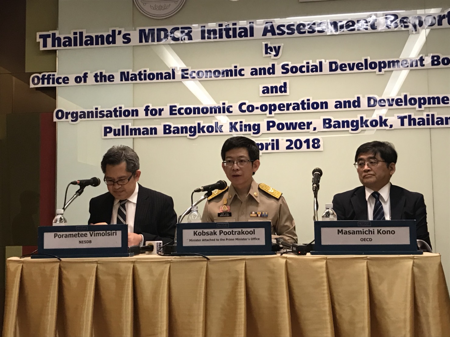 ทั้งนี้ OECD จึงออกรายงานฉบับใหม่ประเมินสถานการณ์ของไทย เพื่อเสนอแนะให้ปรับปรุงแก้ไข 16 โครงการ เช่น การเพิ่มสัดส่วนเงินสมทบกองทุนประกันสังคม เพื่อให้คุ้มกับอัตราเงินเฟ้อในปัจจุบัน เนื่องจากใช้มาเป็นเวลานาน และการเตรียมแผนดูแลสังคมผู้สูงอายุ การพัฒนาทักษะนักเรียนอาชีวะให้ตรงกับความต้องการของตลาดอุตสาหกรรม การปรับปรุงกฎระเบียบที่ซ้ำซ้อนเป็นอุปสรรค การลงทุนข้ามประเทศของอุตสาหกรรมที่เข้มแข็ง การเพิ่มสัดส่วนสตรีให้มีโอกาสเป็น ส.ส.ในสภา การเรียนในปฐมวัย การพัฒนาหลักสูตรการเรียน การลดปัญหาคอร์รัปชั่น จุดอ่อนของไทยเหล่านี้จะนำมาพิจารณาเร่งแก้ไขร่วมกับ OECD เพราะเมื่อคนนอกเข้ามาประเมินจะทำให้มองเป็นจุดอ่อนได้มากกว่าการประเมินตนเอง