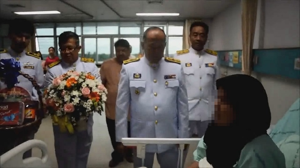 นราธิวาส 10 เม.ย.- สมเด็จพระเจ้าอยู่หัว พระราชทานแจกันดอกไม้และสิ่งของเยี่ยมผู้บาดเจ็บ 4 ราย ประสบเหตุระเบิดในพื้นที่สุไหงโก-ลก