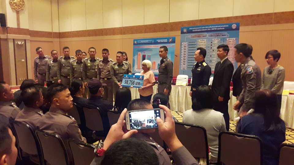 พลตำรวจเอกจักรทิพย์ ชัยจินดา ผู้บัญชาการตำรวจแห่งชาติ พร้อมด้วยพลตำรวจตรีสุรเชษฐ์ พักพาล รองผู้บัญชาการตำรวจท่องเที่ยว และตัวแทนหน่วยงานที่เกี่ยวข้อง อาทิ ปปง., ธนาคารกสิกรไทย ธนาคารไทยพาณิชย์ และธนาคารกรุงเทพ ร่วมกันแถลงมาตรการช่วยเหลือและบรรเทาความเดือดร้อนของประชาชนครั้งที่ 11โดยสามารถอายัดและคืนเงินให้กับผู้เสียหายจากแก๊งคอลเซ็นเตอร์จากหลายพื้นที่ทั่วประเทศ เช่น กรุงเทพฯ จันทบุรี ปราจีนบุรี ตราด นครนายก กาฬสินธ์ รวม 11 ราย เป็นเงินกว่า 1 ล้านบาท ในจำนวนนี้เป็นการอายัดเงินของผู้เสียหายได้เต็มจำนวน 4 ราย