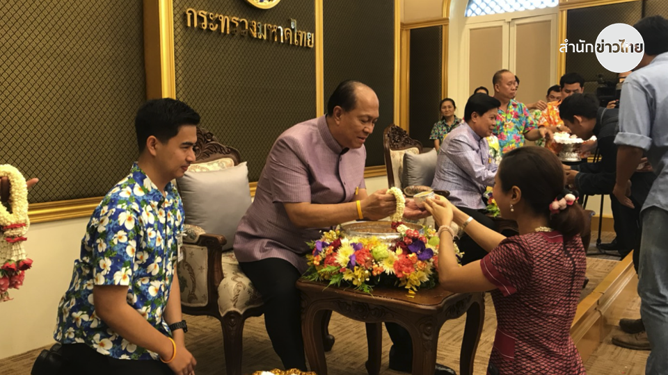 มหาดไทย 11 เม.ย.- รมว.มหาดไทย เปิดโอกาสให้ผู้บริหารระดับสูง ข้าราชการ และสื่อมวลชน รดน้ำขอพร เนื่องในโอกาสเทศกาลสงกรานต์ 2561 ขอข้าราชการช่วยกันขับเคลื่อนงาน ระบุ 1 ปีที่เหลือจะสานต่องานให้สำเร็จ