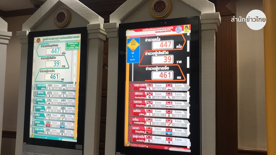 นายวีระศักดิ์ โควสุรัตน์ รัฐมนตรีว่าการกระทรวงการท่องเที่ยวและกีฬา ในฐานะประธานแถลงข่าวสรุปผลการดำเนินงานป้องกันและลดอุบัติเหตุทางถนน (ศปถ.) ช่วงเทศกาลสงกรานต์ 2561 ซึ่งวันนี้ (12 เม.ย.) เป็นวันที่ 2 ของการรณรงค์ “ขับรถมีน้ำใจ รักษาวินัยจราจร“ โดย ศปถ.ได้รวบรวมสถิติอุบัติเหตุทางถนน ประจำวันที่ 11 เมษายน 2561 ซึ่งเป็นวันแรกของการรณรงค์ พบว่า มีอุบัติเหตุ 477 ครั้ง มีผู้เสียชีวิต 39 ราย ผู้บาดเจ็บ 461 คน สาเหตุที่ทำให้เกิดเหตุสูงสุด ได้แก่ ดื่มแล้วขับ ร้อยละ 40.49 รองลงมา คือ ขับรถเร็ว ร้อยละ 26.62 ยานพาหนะที่เกิดอุบัติเหตุสูงสุด ได้แก่ รถจักรยานยนต์ ร้อยละ 81.96 ส่วนใหญ่เกิดอุบัติเหตุในเส้นทางตรง ร้อยละ 61.30 ถนนกรมทางหลวง ร้อยละ 39.15 ถนนใน อบต./หมู่บ้าน ร้อยละ 38.4 ช่วงเวลาเกิดอุบัติเหตุสูงสุด คือ 16.00-20.00 น. ร้อยละ 28.41 ผู้บาดเจ็บและเสียชีวิตสูงสุดอยู่ในช่วงอายุ 50 ปีขึ้นไป ร้อยละ 28.40