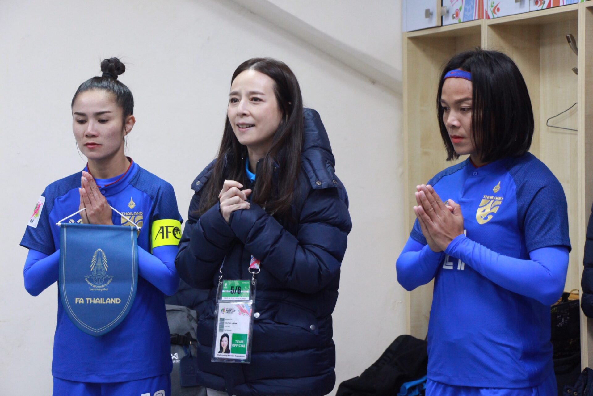 ด้านมาดามแป้ง นวลพรรณ ล่ำซำ ผู้จัดการ ฟุตบอลหญิงทีมชาติไทย ก็ได้ให้สัมภาษณ์ก่อนเกมสำคัญคืนนี้ ว่า “ต้องยอมรับว่า ตลอด 10 ปีที่เป็นผู้จัดการทีมมา วันนี้เป็นวันที่เครียดและกดดันที่สุด เนื่องจากเราต้องเอาชนะให้ได้ เพื่อไปฟุตบอลโลก เมื่อคืนได้คุยกับนักกีฬาว่า เราประมาทเกมนี้ไม่ได้ ซึ่งทุกคนให้สัญญาว่าจะเต็มที่ที่สุด เพราะเกมนี้คือเกมตัดสินพวกเรา เราไม่อยากแม้แต่เสมอ เราต้องการสามแต้มให้ได้ แม้จะยากเพราะเค้าเปลี่ยนผู้เล่นหน้าใหม่ แต่เราก็ศึกษามาดี หากเราไปบอลโลกได้ มันก็เป็นชื่อเสียงของประเทศ และที่สุดของชีวิตนักกีฬาและแป้งเอง”