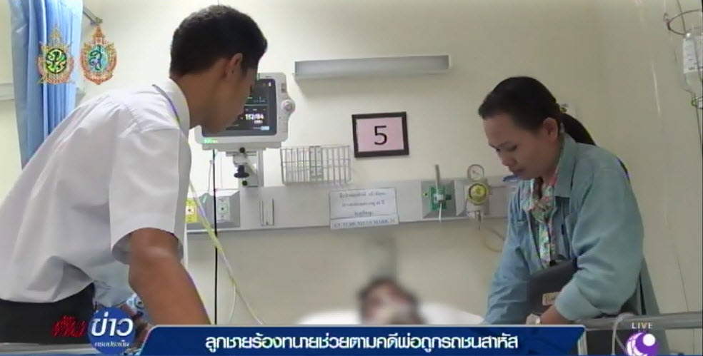 สมุทรสาคร 30 ก.ย.-นักเรียน ม.6 ลูกชายขอความช่วยเหลือจากทนายความ ให้ช่วยติดตามคดีรถเก๋งชนพ่อวัย 44 อาการสาหัสแล้วหนี แจ้งความแล้วคดีไม่คืบหน้า
