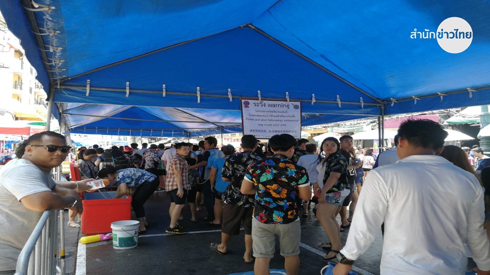 งานสงกรานต์ถนนข้าวสาร ประจำปี 2561 หลังเจ้าหน้าที่เปิดจุดคัดกรอง มีนักท่องเที่ยวทั้งชาวไทยและต่างชาติ ทยอยเข้ามาเล่นน้ำอย่างต่อเนื่อง ท่ามกลางสภาพอากาศร้อนอบอ้าว ส่วนใหญ่สวมใส่เสื้อผ้าลายดอก หลากสีสัน ถือปืนฉีดน้ำ มาร่วมเล่นน้ำกันอย่างคึกคัก